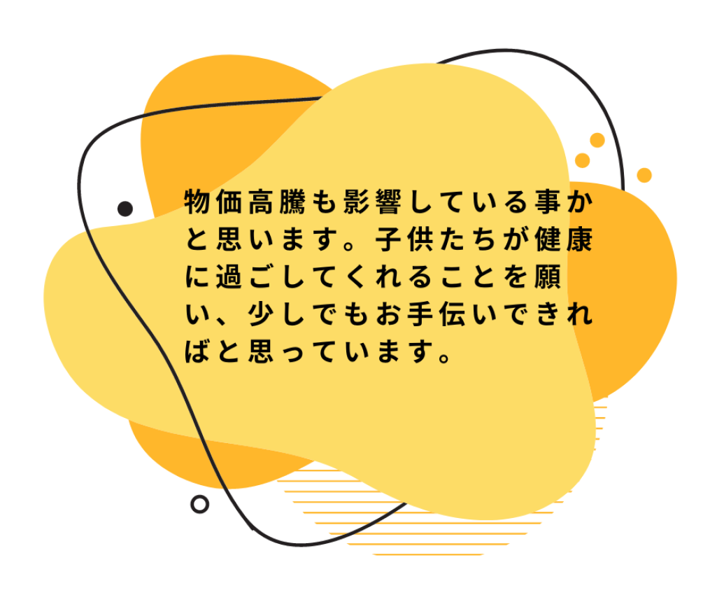 認定NPO法人全国こども食堂支援センター・むすびえは、「こども食堂の支援を通じて、誰も取りこぼさない社会をつくる」という思いで、2018年12月にNPO法人化された団体です。私たちは、こども食堂を通じて、多くの人たちが未来をつくる社会活動に参加できるように活動をしています。長期化するコロナに加えて、物価上昇においても対策を講じ、工夫をこらしながら「食」を通じてつながり続け、地域に安心感を届けてくれている全国のこども食堂。その活動は、コロナ禍でも全国に3000箇所以上増えていることが私たちの調査で明らかとなっています。こんな時だからと踏ん張って、子どもを真ん中においた地域づくりをすすめる「こども食堂」を継続的に支えていけるよう、あたたかいご支援お待ちしております。