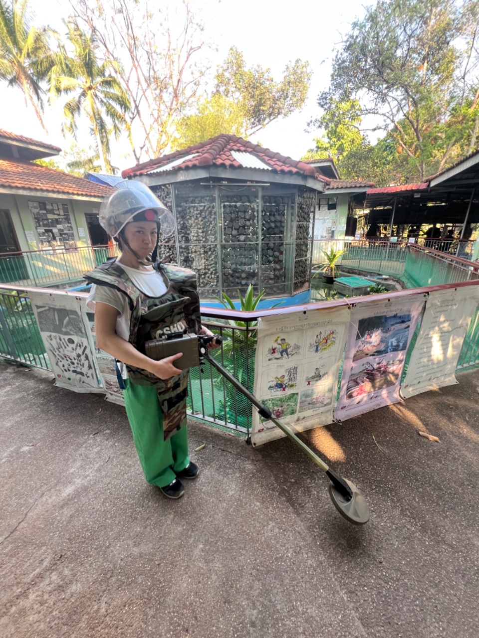 また、AkiRaが設立した地雷博物館では、世界中からの訪問者に向けたガイド活動を行いました。この博物館は、地雷除去活動を行ってきたAkiRaの経験をもとに、カンボジアの地雷問題を伝える場として設立されました。私たちは、地雷の恐ろしさだけでなく、なぜこの問題が生じたのか、そして今どのように解決しようとしているのかを来館者に伝え、地雷問題への国際的な関心を高める役割を果たしました。