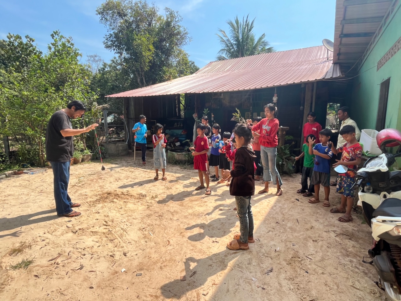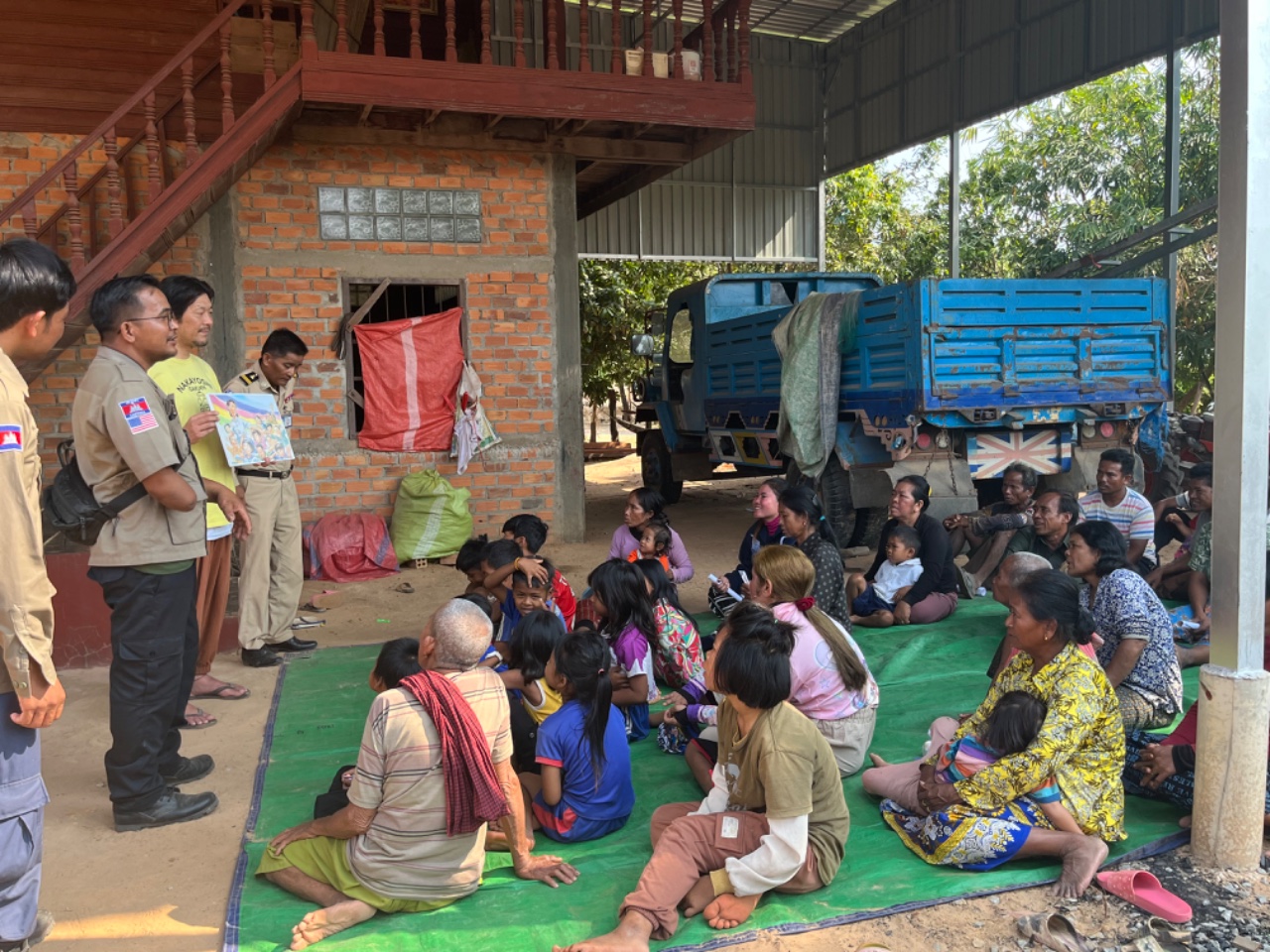 次に、地雷犠牲者であるBelが運営する学校で授業を実施しました。この学校は、地雷によって傷つきながらも未来を切り拓こうとする子どもたちが学ぶ場です。今回の授業では、広島の小中学校の生徒たちが手作りした教材を用いました。戦争の悲劇を知る広島の子どもたちが、遠く離れたカンボジアの子どもたちのために心を込めて作成した教材を使用することで、国境を越えた平和教育が実現しました。カンボジアの子どもたちは、自分たちの学びが世界の仲間とつながっていることを実感し、大きな希望を抱くことができました。