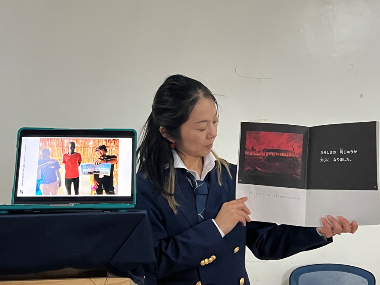 スピーチでは、被爆地ヒロシマの絵本を翻訳・活用する『ピースバトンプロジェクト』についても紹介しました。日本の子どもたちが自ら翻訳した絵本を、南スーダンや東ティモール、コンゴ民主共和国などの教室に届けるこの取り組みは、「子どもたちが国境を超えて平和の担い手となる」姿を示しています。