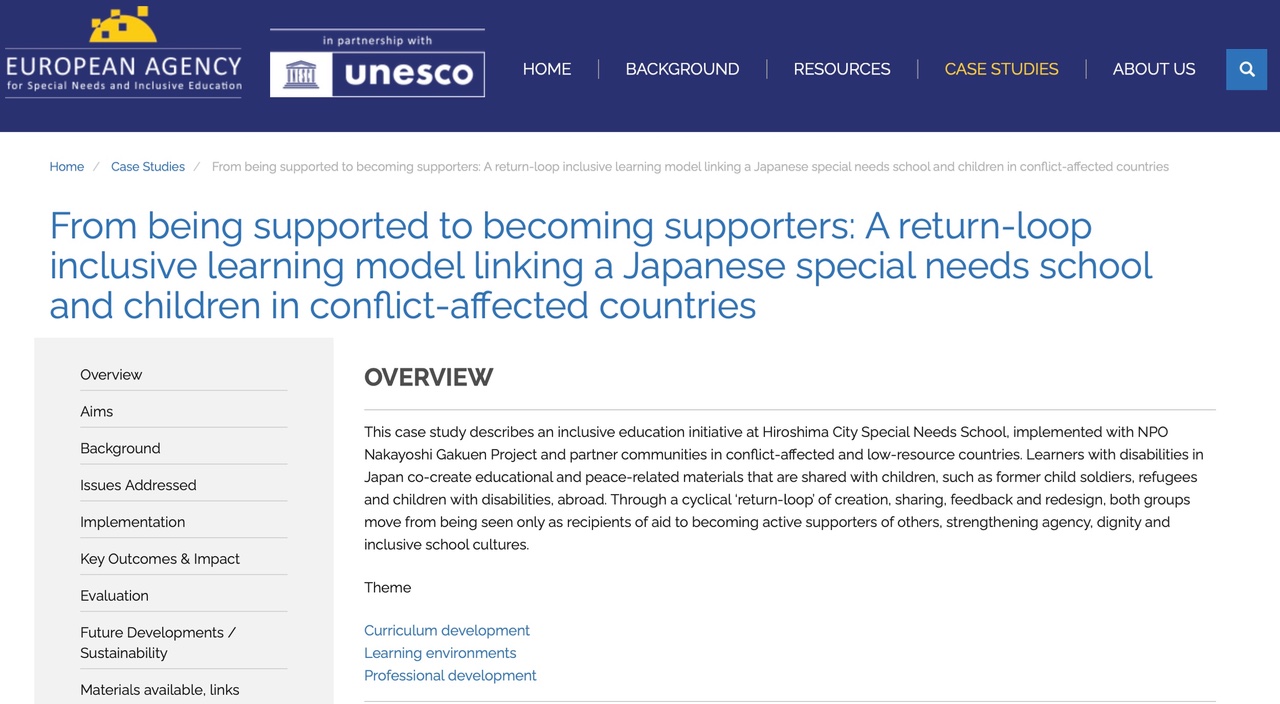 2026年2月11日、特定非営利活動法人なかよし学園プロジェクトの取り組みが、UNESCO と European Agency for Special Needs and Inclusive Education が共同運営する国際知見プラットフォーム Inclusive Education in Actionに、ケーススタディとして掲載されました。
