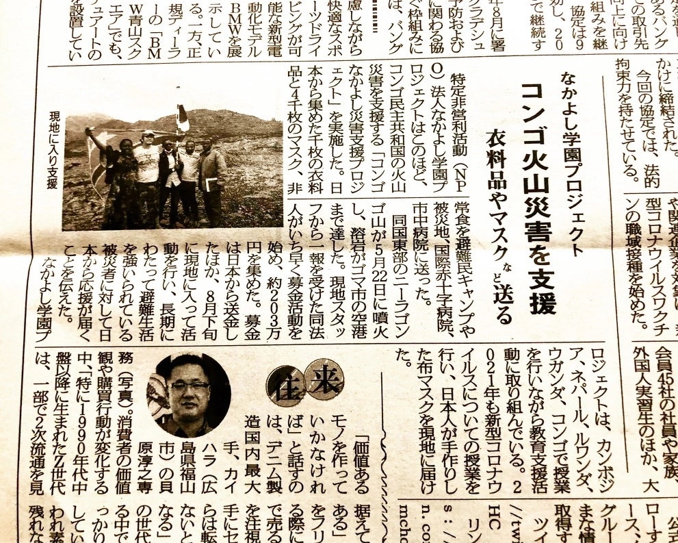 さらに、DRコンゴ火山災害支援では、萩原商店の継続的な応援により、衣料品・マスク等の物資を被災地へ届け、復旧期の生活再建を支えました。現地の防災教育(なかよし防災学校)とも連動し、「知識」と「物資」を一体で届けるモデルを展開しました。