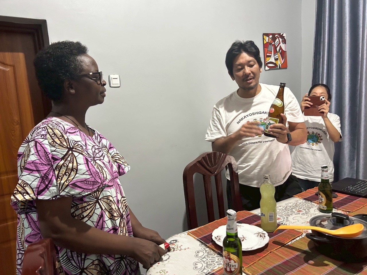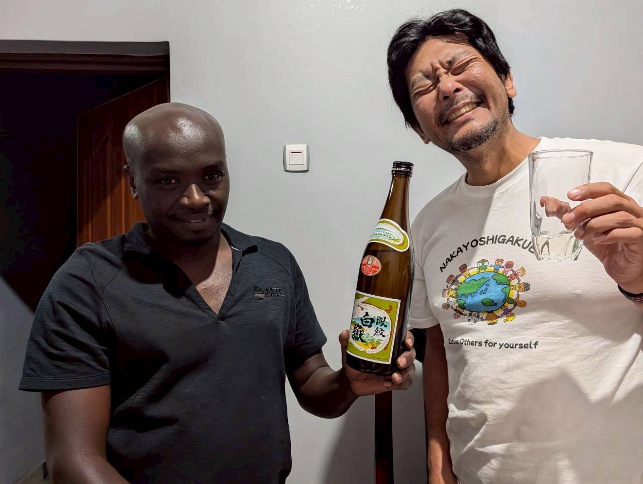 2025年8月にはアフリカ・ルワンダで行われたジェノサイド・サバイバーの方々のパーティーにて白嶽のボトルを囲み、長い苦難を越えて歩む方々の婚約の門出を祝福しました(写真)。“島の一本”が、国や言語を越えて「尊厳を讃える乾杯」の象徴となり、文化交流と心の復興に温かな光を添えました。
