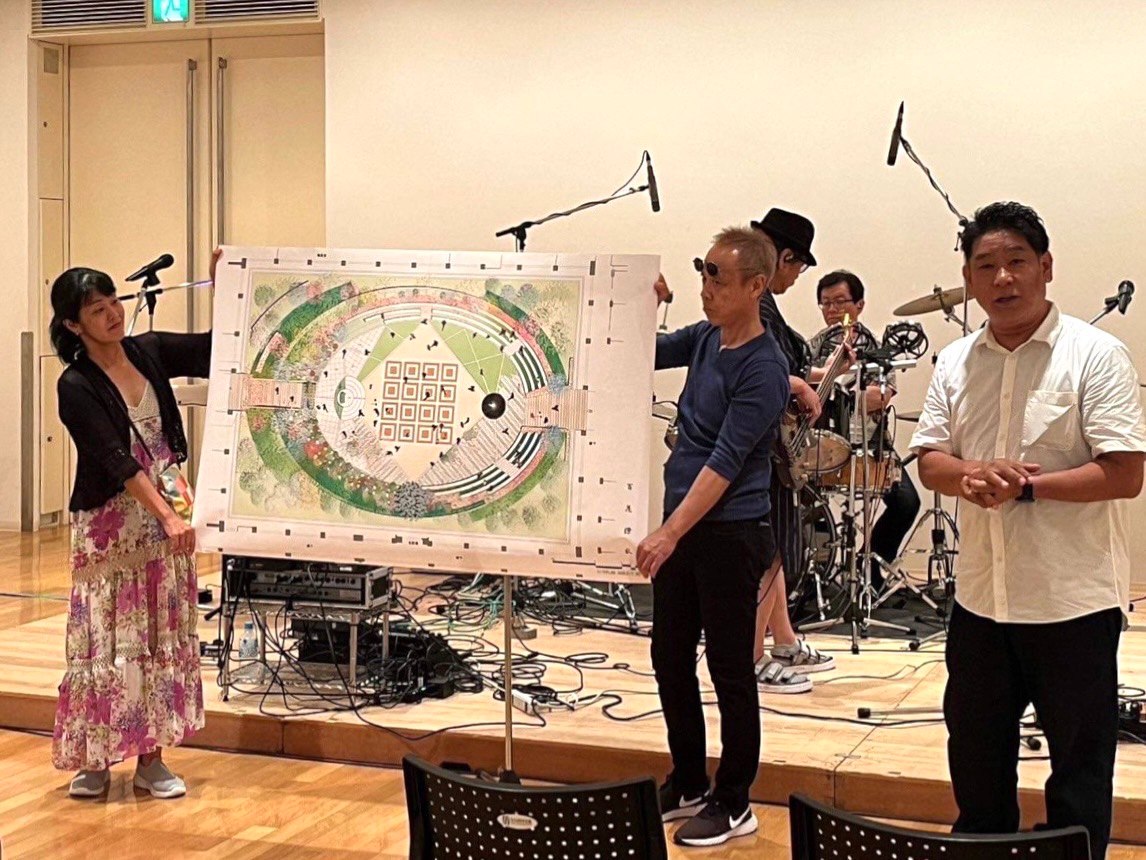 奈良市にある「なら100年会館」にお邪魔して、募金活動を行ってきました。自身も軽音OBである居場さん(中庭•設計者)にショートプレゼンをお願いしました。