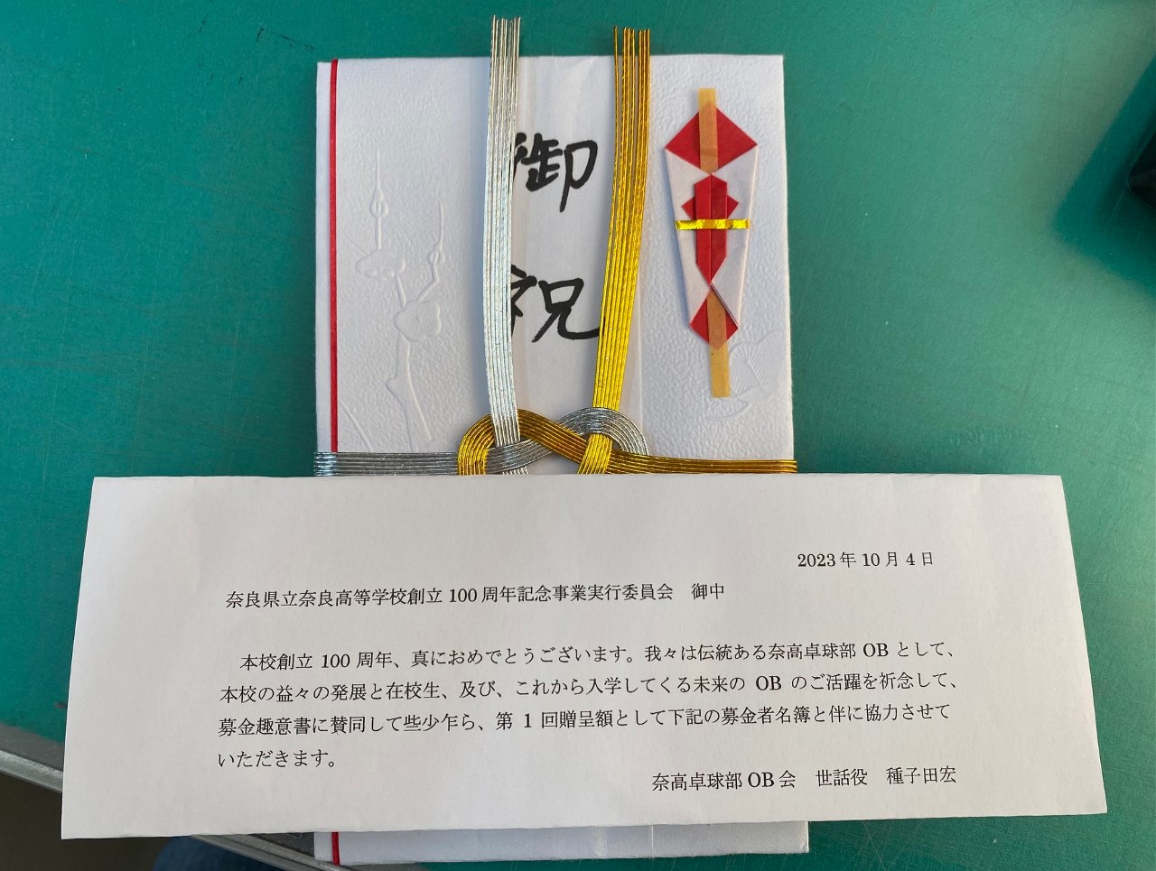 奈高卓球部OBからの寄附