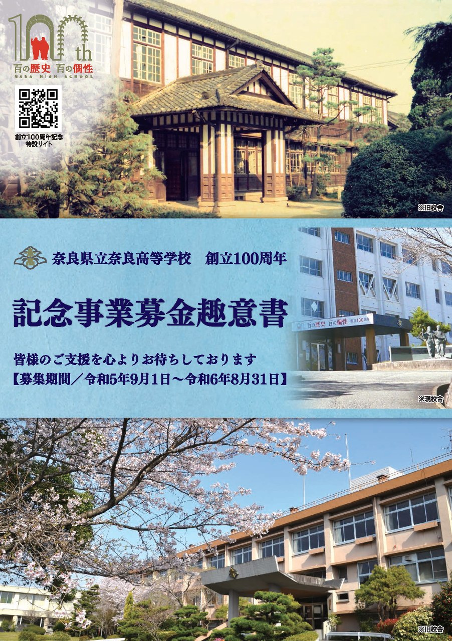 奈良高校は創立100周年を迎え、昨年9月より卒業生及び保護者の皆さま方からのご寄附により、朱雀の校地に「竪義の庭」を整備するなど、記念事業を進めてまいりました。募金期間は、令和6年8月31日をもって終了いたしました。多くの皆様方にご支援いただきましたこと、御礼を申し上げます。今後も引き続き、創立100周年記念事業として、11月1日の記念式典の開催、記念誌の制作を引き続き進めてまいります。