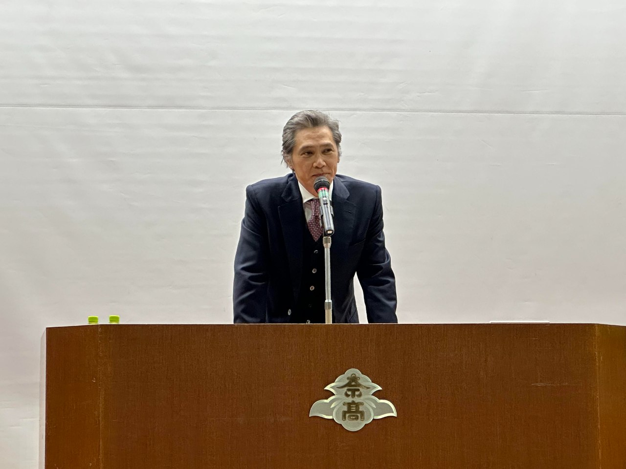 11月2日(木)午後、奈良高校体育館にて俳優の加藤雅也さん(S57年卒)をお迎えし「創立100周年記念講演会」を開催しました。講演の前に、創立100周年のお祝いの言葉や在校生へのメッセージを頂戴しました。