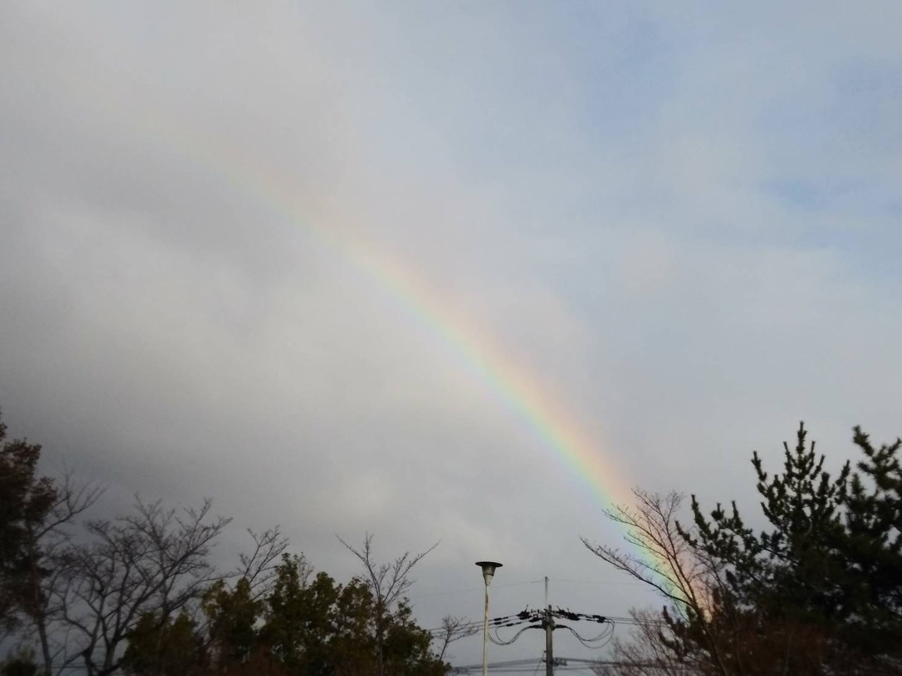 朝から少し雨が降りました。その後、北の空に虹が架かっていました。