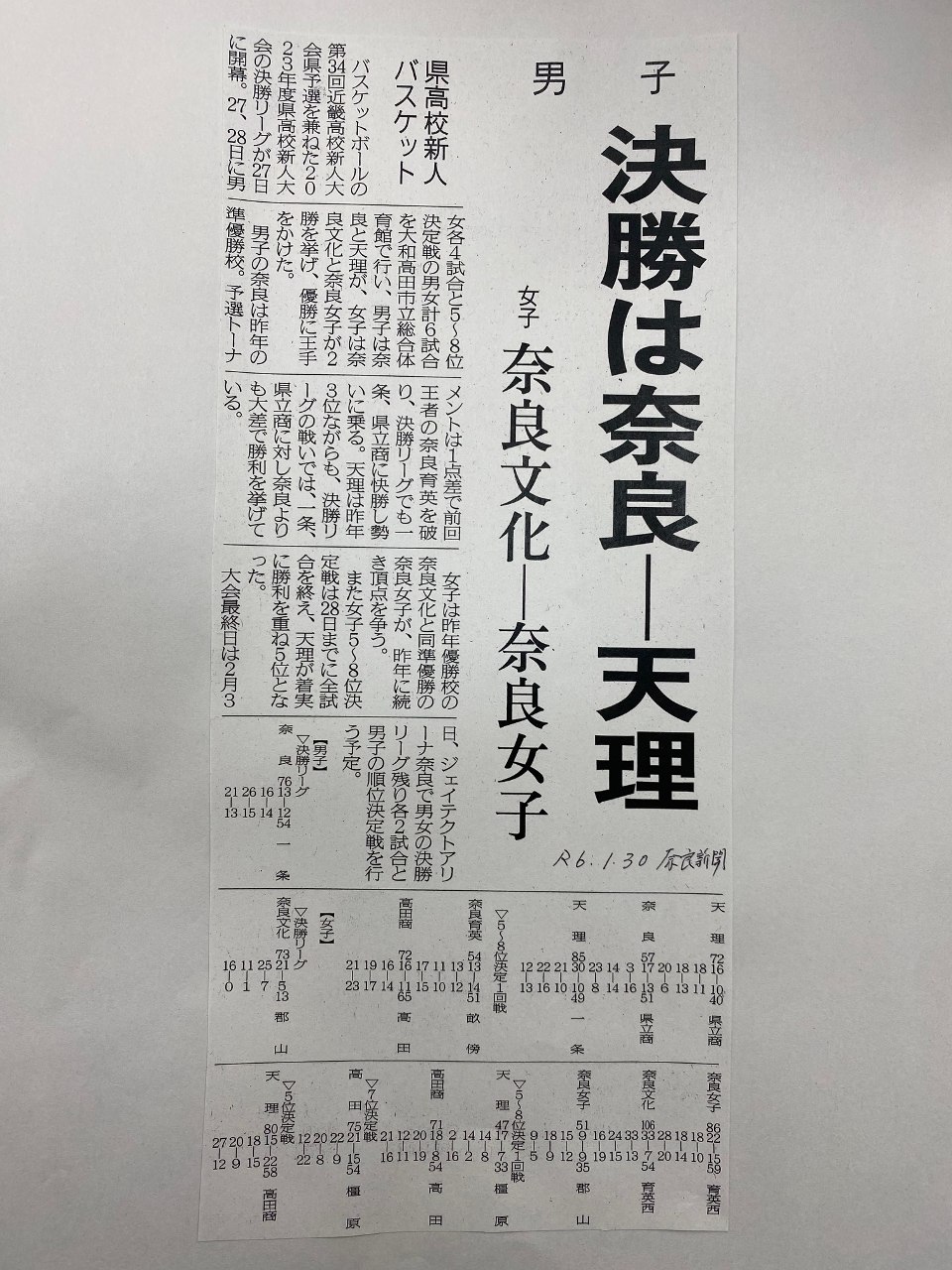 【バスケ新人戦】決勝は奈良vs天理