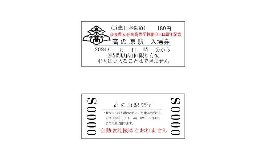 【発売予告】奈良高校創立100周年記念入場券の発売
