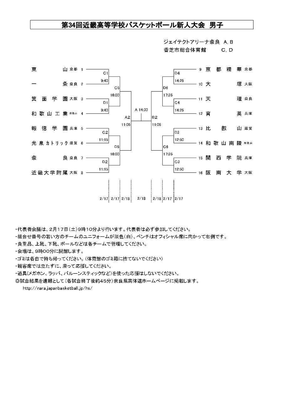 【バスケ近畿:新人戦】初戦(2/17)は近畿大学附属高校
