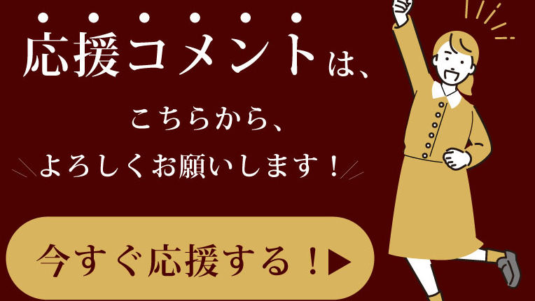 なお、本サイト以外の方法(ゆうちょ・銀行など)で募金を頂いた方々からも応援メッセージを募集しています。親しいご友人に、どうぞ、お知らせ下さい。よろしくお願いいたします。(下の画面をクリックすると展開します)