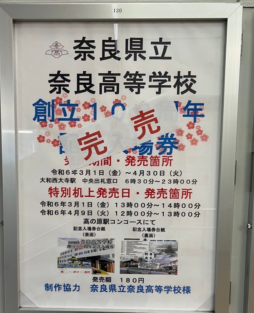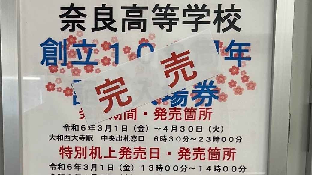 【完売】奈良高校創立100周年記念入場券が完売しました