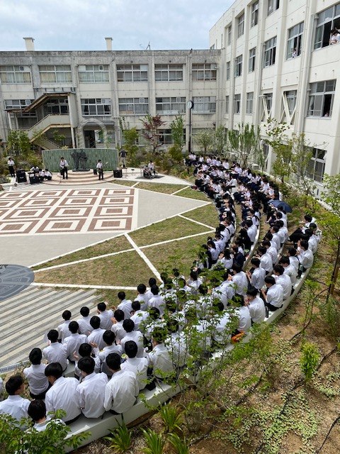 記念募金により造られた中庭を、これからも生徒が活躍できる場所、楽しめる場所として使わせて頂きたいと思います。