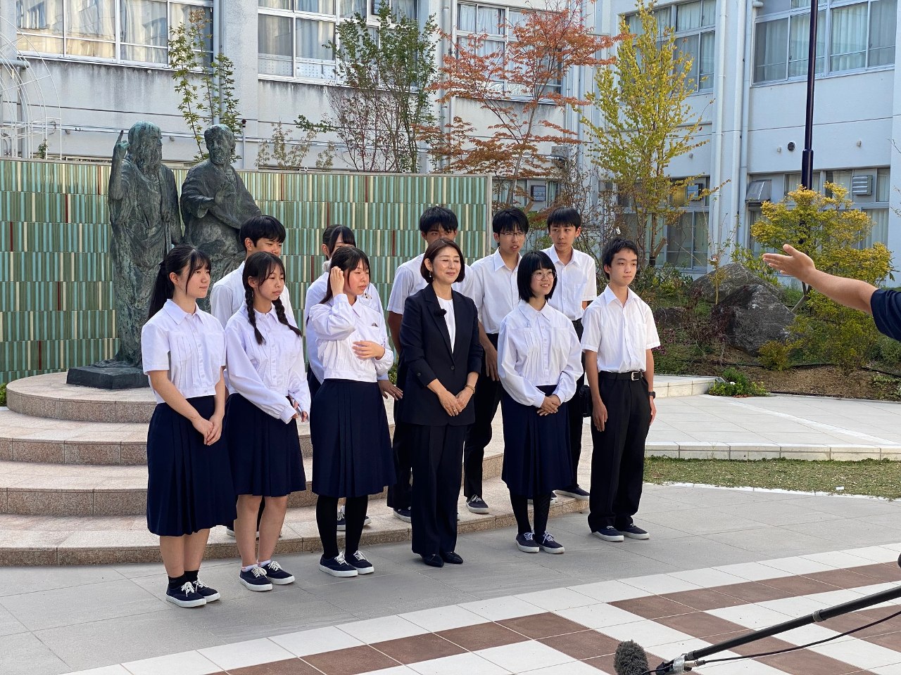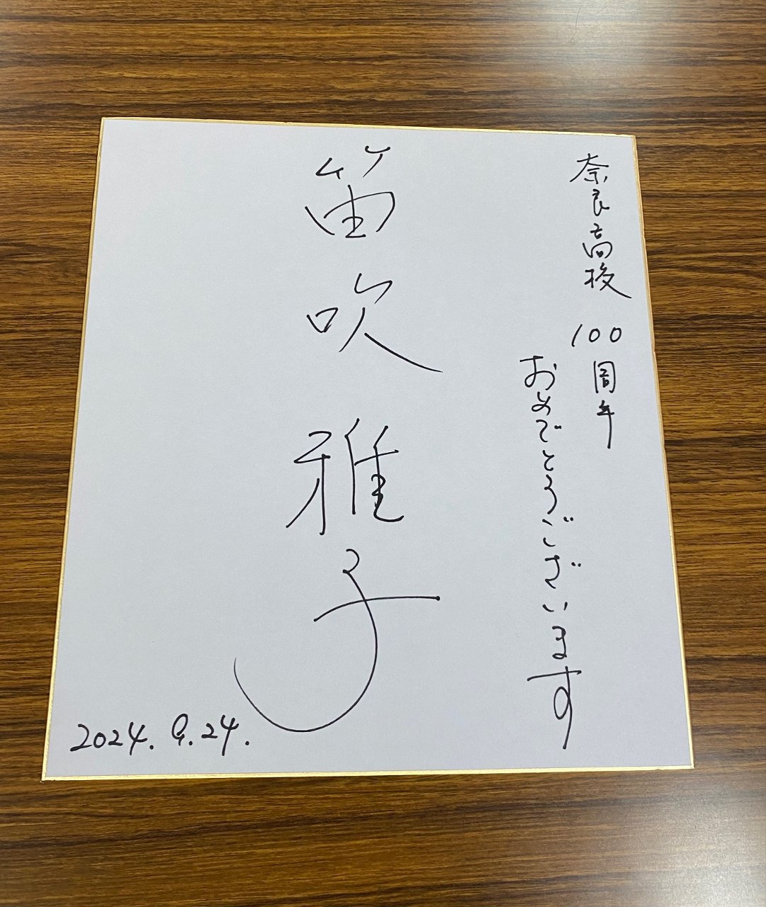 9月24日(金)、本年11月1日開催予定の創立100周年記念式典に放映するビデオレターを撮影するため、笛吹雅子さんに、お忙しいところ奈良高校までお越しいただきました。