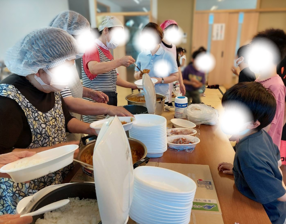 「私は娘と一緒に何度か参加させていただきました。物づくりは私自身も童心に返り夢中になりました。家庭ではなかなか勉強しない娘もなないろだと周りの影響ですんなり勉強を始める事、汗だくになりながらのボール遊び等、思い出は沢山ありますが、1番印象に残っているのは地域の方が作ったカレーを皆で食べる時間です♪ 作ってくれた皆さんの笑顔と、おかわりをする子供達、とても微笑ましく、時代と共に忘れかけた何かを思い出させてくれます。年代幅広い交流はとても大切だと改めて感じました。健やかな子供達の成長と、地域の皆さんの笑顔に繋がるこの事業はとても素晴らしい活動だと思います(*^^*)」
