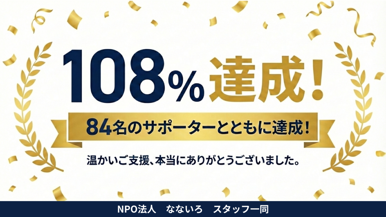 最終的な結果として、84名の方々から、目標を大きく上回る「162万4,000円」という多大なるご支援をいただくことができました。