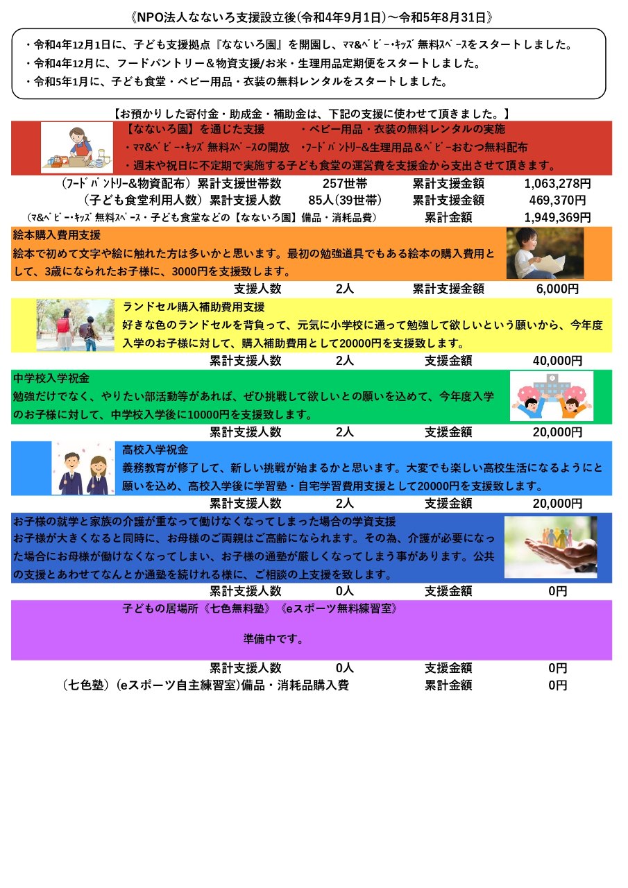NPO法人なないろ支援の活動は、当法人役員からの寄付金と、正会員会費、支援者様からの寄付金、企業・団体様からの寄付金や助成金で活動しております。