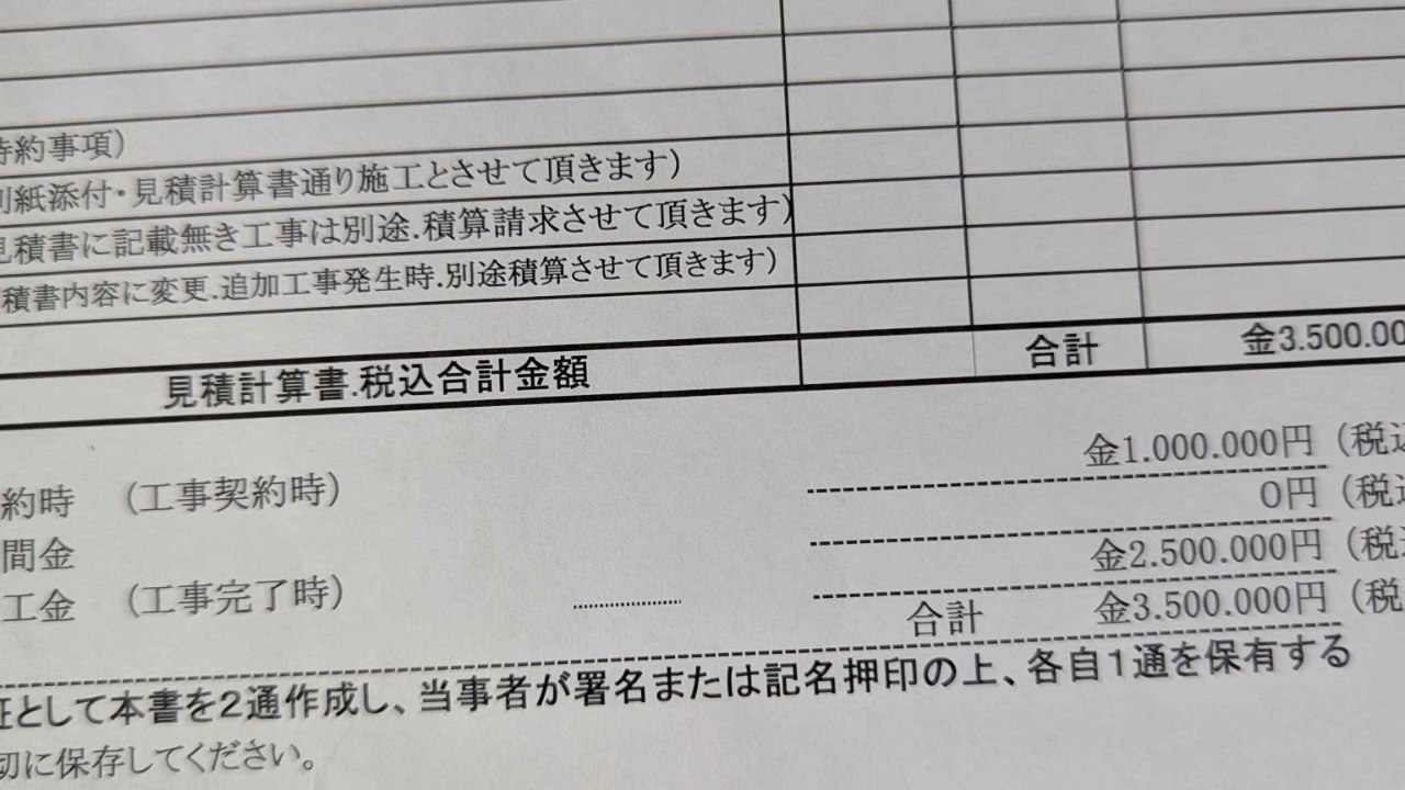 あれから合い見積もりを3社お願いいたしました。そして見積もりがあがってきて、その中の1社がいちばん財政的にも近いところでお願いできたので、決定しました。