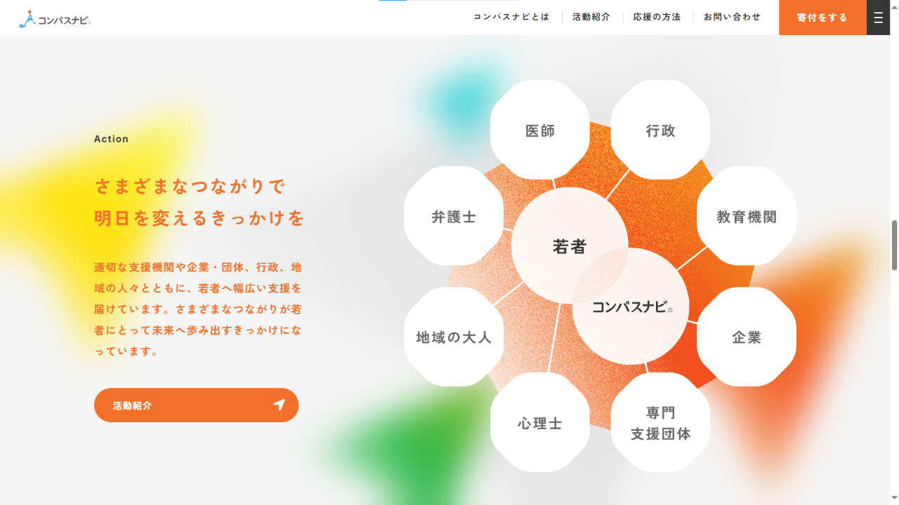 今回のリニューアルでは、 「見やすさ」「分かりやすさ」「アクセスのしやすさ」 を追求し、支援者の皆さまや若者たちが必要な情報にスムーズにたどり着けるデザインを目指しました。