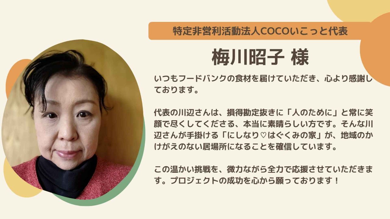 2026-03-26 15:42応援メッセージのご紹介18:梅川昭子様(特定非営利活動法人COCOいこっと代表)特定非営利活動法人COCOいこっとの代表である梅川昭子様からいただいた応援メッセージをご紹介します!2026-03-26 15:42応援メッセージのご紹介18:梅川昭子様(特定非営利活動法人COCOいこっと代表)特定非営利活動法人COCOいこっとの代表である梅川昭子様からいただいた応援メッセージをご紹介します!