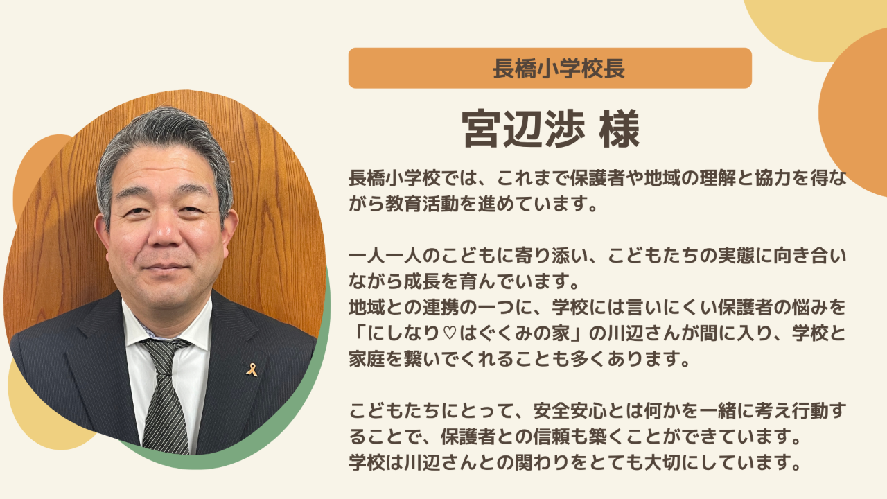 「にしなり❤️はぐくみの家」の川辺さんが間に入り、学校と家庭を繋いでくれることも多くあります。