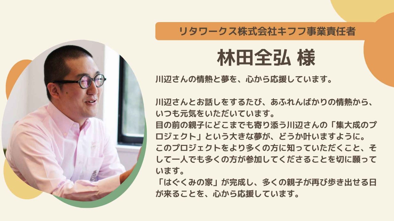 応援メッセージのご紹介17:林田全弘様(リタワークス株式会社 キフフ事業責任者)
