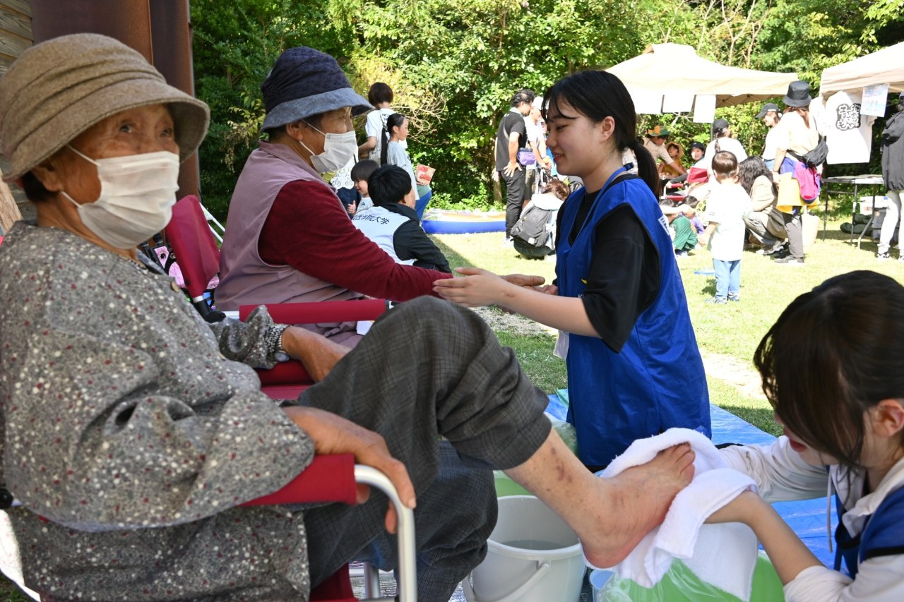 「やさしや足湯隊」も、子どもの遊び場スペースでブース出展させていただき、仮設住宅の集会所とは違う顔ぶれ、年代の方が足湯をされていきました。足湯をされた方の中には、震災が起きて金沢に引っ越してしまったけどイベントを機に遊びに戻って来られた方もいれば、出展者の中には能登のためにネパールから来られた方もいました。ただ、一見楽しそうなイベントの裏で、「本当は残りたかったけど、子どもがいたから仕方なかった」のような故郷を離れてしまう寂しさとの葛藤も垣間見えました。子どもたちの中にも、「○○ちゃんと会ったー!」と久しぶりの再会を楽しんでいる様子も見られました。