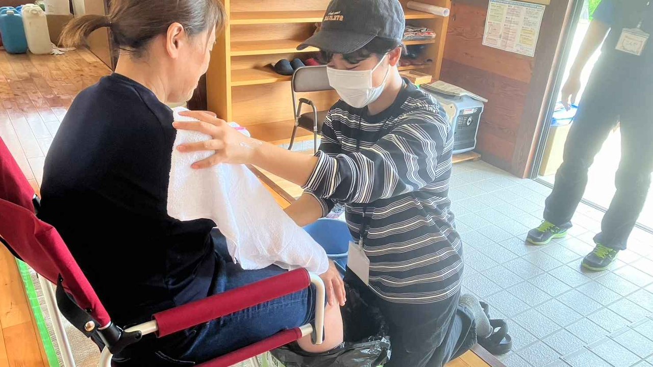 私たちは能登半島地震の支援として「やさしや足湯隊」を結成しました。足湯ボランティアは、阪神・淡路大震災の際にKOBEで始まり、全国に広まった活動です。タライにお湯を張って足をつけ、被災者の方の手に触れ、さすることにより様々なつぶやきが聞こえてきます。