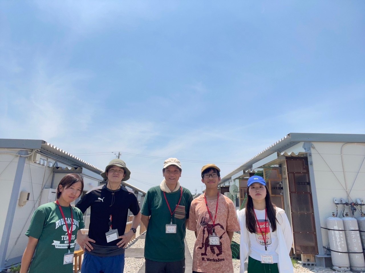 62 歳の私が、第 10 次足湯隊(6/7~9)のメンバーとして 19~25 歳の学生や若者に交じって、運転手などのサポートを主な任務に参加させていただきました。現地の活動はチームに分かれて、運転手の役割の他、仮設住宅での足湯活動、ボランティアの拠点づくりに向けたオートキャンプ場の廃材廃棄、農作業のお手伝い、を行いました。