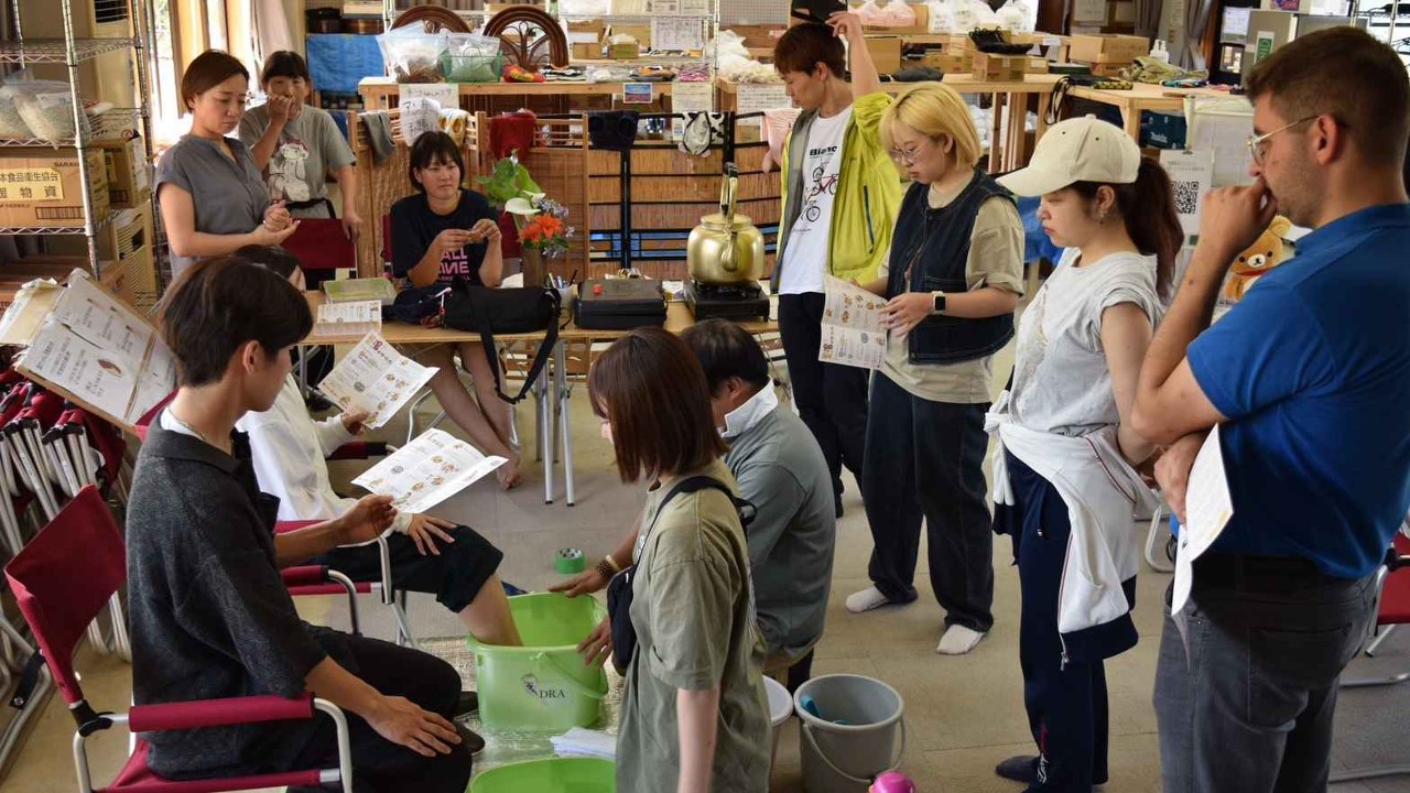 私たちは能登半島地震の支援として「やさしや足湯隊」を結成しました。足湯ボランティアは、阪神・淡路大震災の際にKOBEで始まり、全国に広まった活動です。タライにお湯を張って足をつけ、被災者の方の手に触れ、さすることにより様々なつぶやきが聞こえてきます。