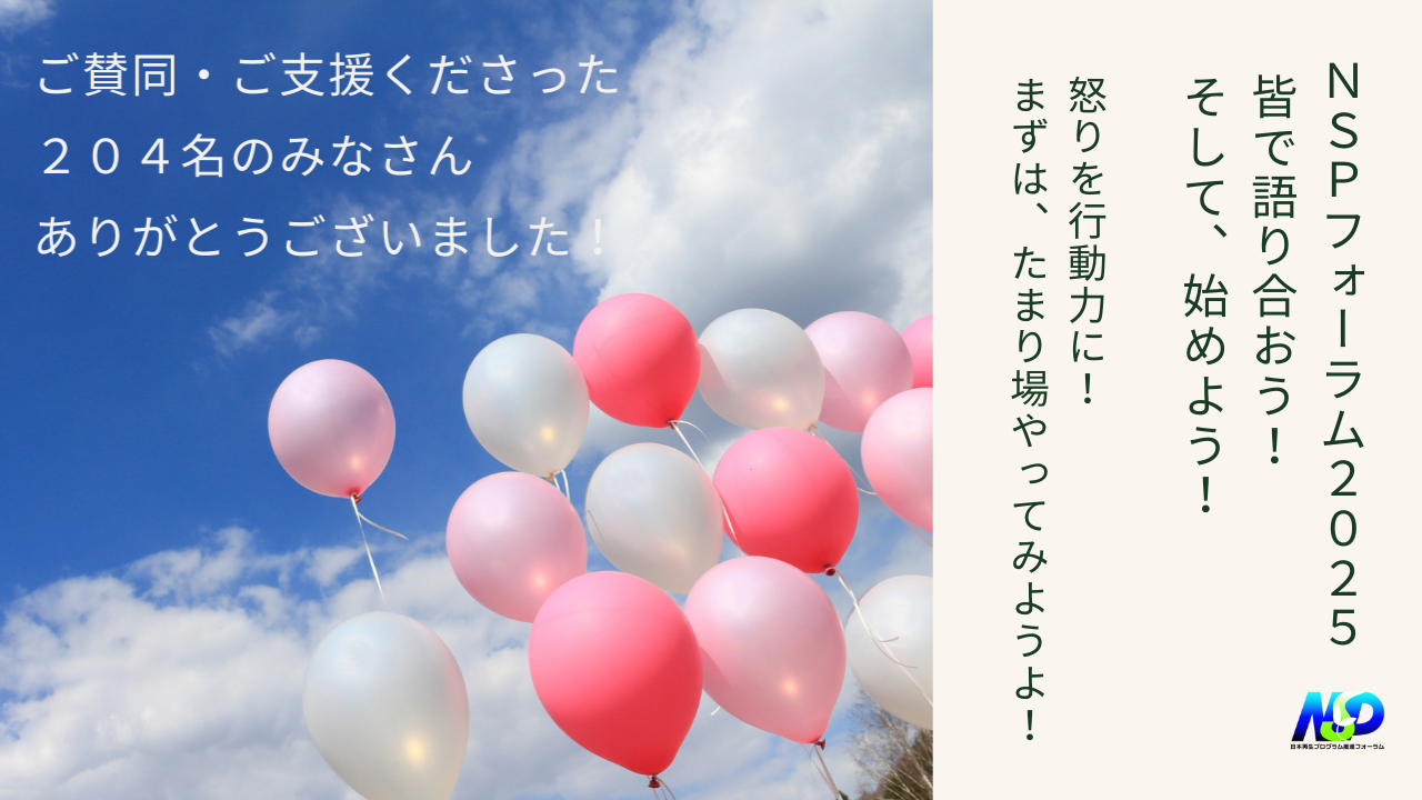 今回のクラウドファンディングにてお寄せいただきましたご支援は、NSPフォーラム2025開催費用・法人運営費用(通信運搬費・旅費交通費・人件費など)として大切に活用させていただきます。