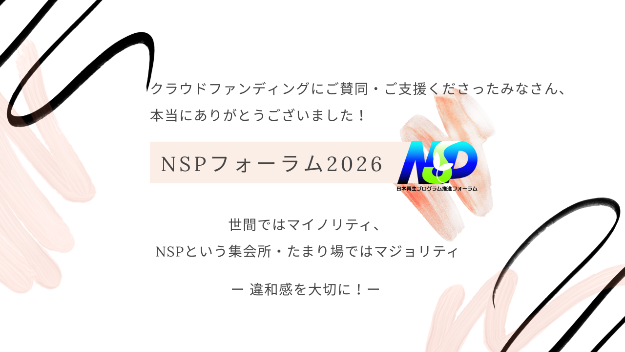 おかげさまで、先週末・4月19日(日)NSPフォーラム2026を開催することができ、ご参加くださった皆さんととても有意義な愉しい“集会所”をつくることができました。