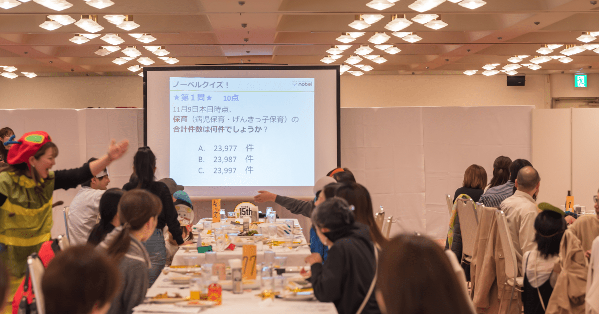 本日現在での累計の病児保育出動件数はいくつでしょう?という問題には、各テーブル、頭を捻り答えていました。ノーベルキッズたちも協力し合って答えていましたよ。