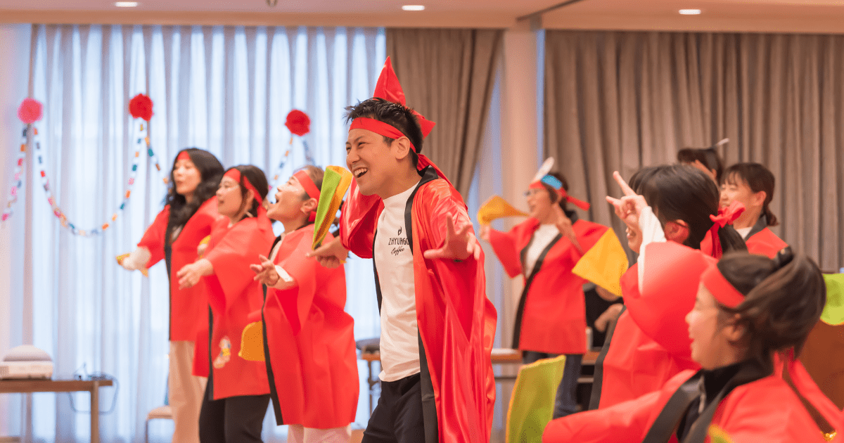 場もかなり温まってきたところで、よさこいチームによる「よいよいよい」の披露が行われました。