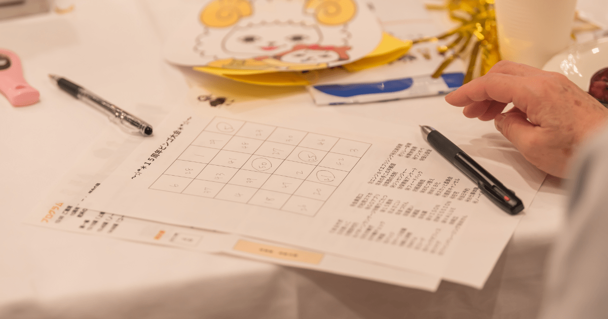 「エンジョイエブリシング」「スカッ!と委員会」など、ノーベルならではの言葉を空白のマスに入れていくオリジナルのビンゴです。