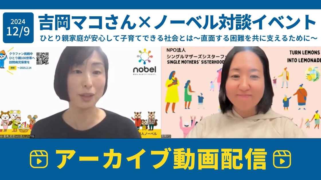 「ついつい自分のことは後回しになりがちですが、お母さんが心の余裕を30分でも持てることで、次につながっていく。とてもよくわかります。心と身体のケアと共に、ノーベルの『ひとり親パック』や『まるサポ』でサポートすることで、お母さんたちの笑顔が増えていきますように」