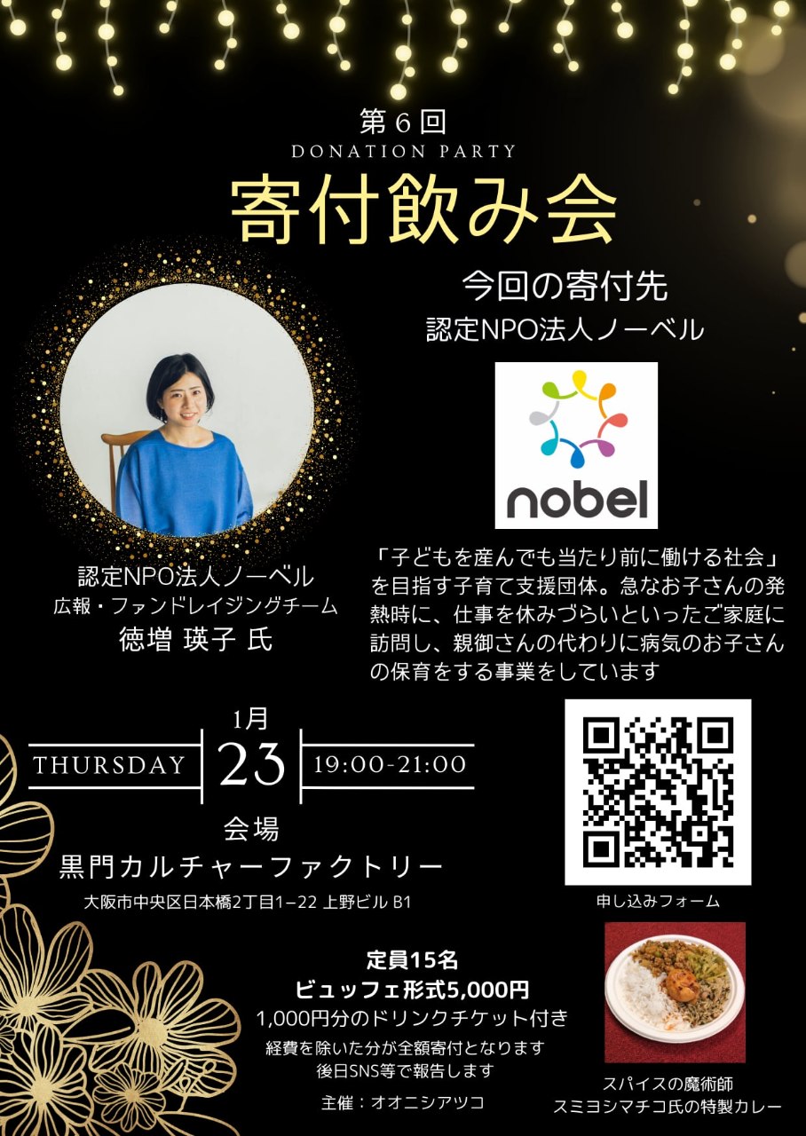 参加費のうち、経費を除いた全額がノーベルへ寄付されます。