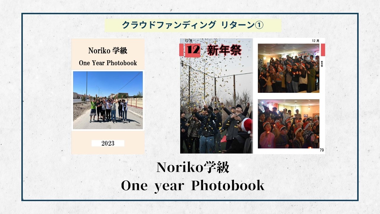 2024-01-23 11:06リターンの準備ができました① 【Noriko学級One Year Photobook】大変長らくお待たせいたしました。ようやくリターンの準備ができました。リターンを通して、皆様にNoriko学級からの感謝の気持ちをお伝えしたいと思います。 今週1週間でクラウドファンディングを支援してくださった皆様へリターンのお渡しを予定しております。 本日は全ての支援コースのリターンとさせていただいている、【Noriko学級One Year Photobook】を紹介させていただきます!2024-01-23 11:06リターンの準備ができました① 【Noriko学級One Year Photobook】大変長らくお待たせいたしました。ようやくリターンの準備ができました。リターンを通して、皆様にNoriko学級からの感謝の気持ちをお伝えしたいと思います。 今週1週間でクラウドファンディングを支援してくださった皆様へリターンのお渡しを予定しております。 本日は全ての支援コースのリターンとさせていただいている、【Noriko学級One Year Photobook】を紹介させていただきます!
