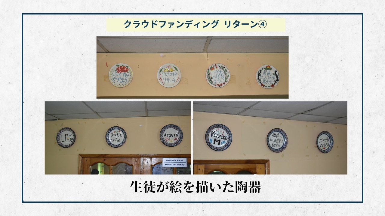 2024-01-27 08:39リターンの準備ができました⑤ 【生徒が絵を描いた陶器】大変長らくお待たせいたしました。ようやくリターンの準備ができました。リターンを通して皆様にNoriko学級からの感謝の気持ちをお伝えしたいと思います。 今週1週間でNoriko学級を支援してくださった皆様へリターンのお渡しを予定しております。 本日は生徒がご支援者様のお名前を書いた陶器を紹介させていただきます!2024-01-27 08:39リターンの準備ができました⑤ 【生徒が絵を描いた陶器】大変長らくお待たせいたしました。ようやくリターンの準備ができました。リターンを通して皆様にNoriko学級からの感謝の気持ちをお伝えしたいと思います。 今週1週間でNoriko学級を支援してくださった皆様へリターンのお渡しを予定しております。 本日は生徒がご支援者様のお名前を書いた陶器を紹介させていただきます!