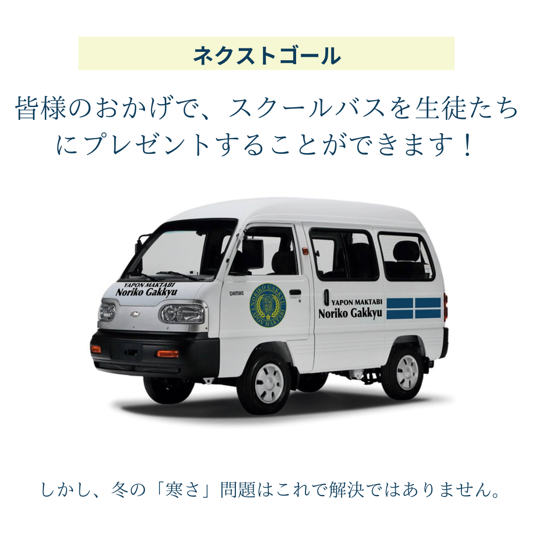 Noriko学級があるリシタンの町では冬の寒さが続いております。毎日朝と夜はマイナスになるほど、とても寒いです。。。
