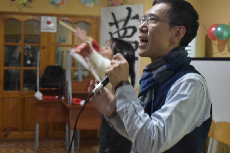 なんと、ニューイヤーコンサートでは生徒だけでなく、宮内先生も歌います!学生ボランティアのかなさんは宮内さんの歌に合わせて踊ります!