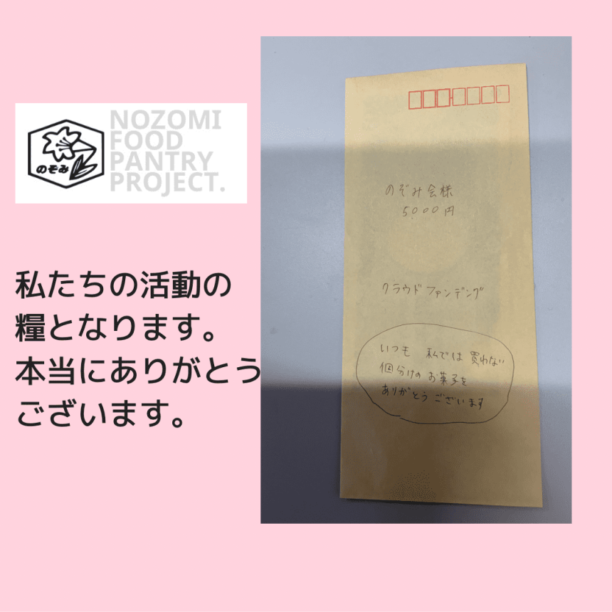 2022-10-16 21:05のぞみちゃん食堂開催しました!参加された母子家庭のお母さんからご寄付をいただきました。2022-10-16 21:05のぞみちゃん食堂開催しました!参加された母子家庭のお母さんからご寄付をいただきました。