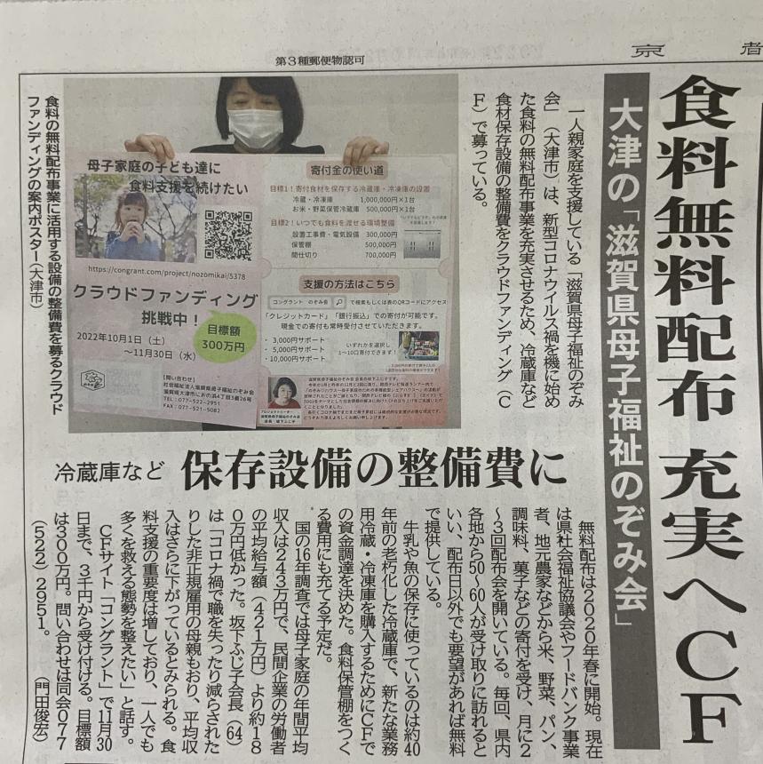 京都新聞にのぞみ会CFの記事が掲載されました。