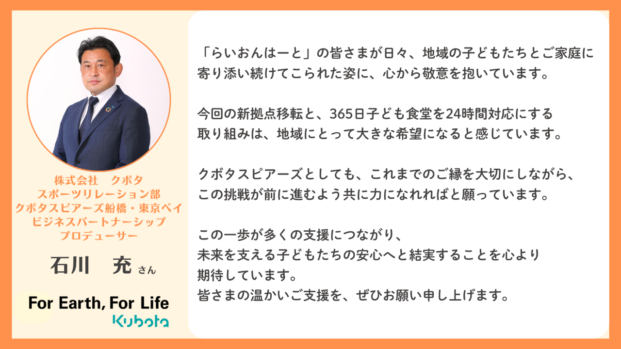 ◾️ジャパンラグビリーグワンのチーム クボタスピアーズ子ども食堂