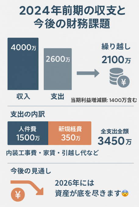 ※下記4000万円の収入には、1年の使用期限と用途が限られた補助金や助成金が含まれており、運営費には使えません。一見潤っている様に見えますが、2026年で活動資金が底をつきます。