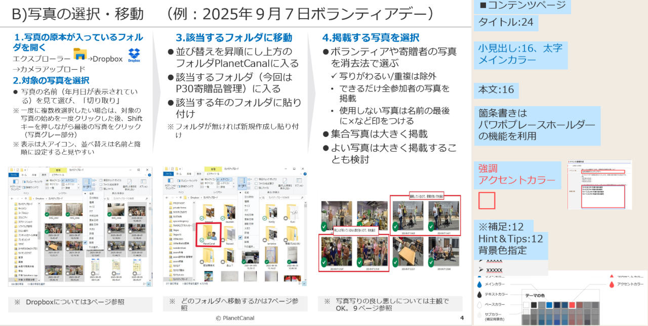 (上の写真は、公開しても差し支えのないホームページ更新のマニュアルの例です。)