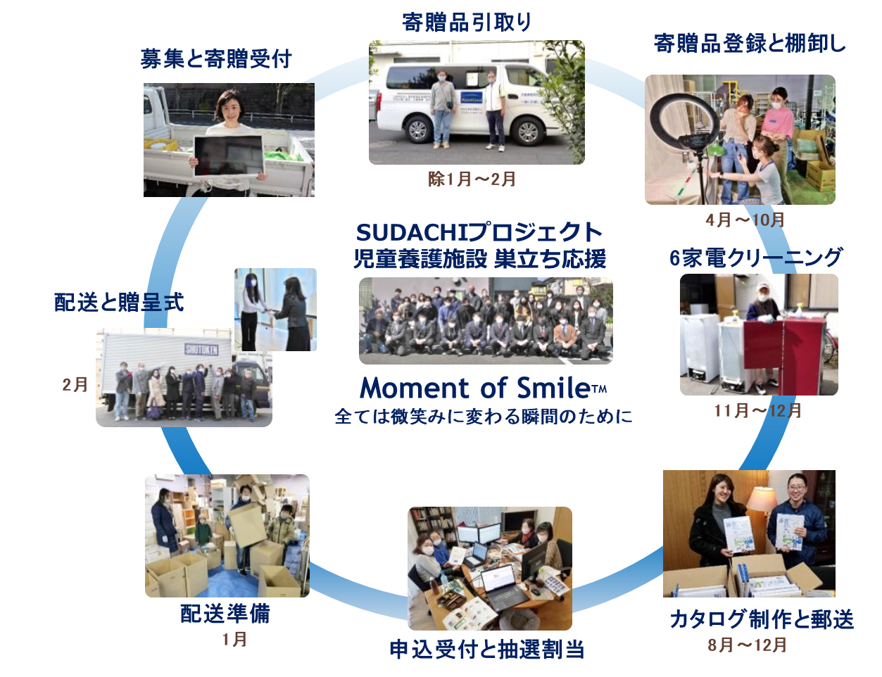 ”より多くの人が、児童養護施設の子ども達のことに関心をもち、無理なく参加し貢献できる形にして、その力を集め繋いで ひとり暮らしの家電家具などを届ける運河にしよう”とSUDACHIプロジェクトをスタートしました。
