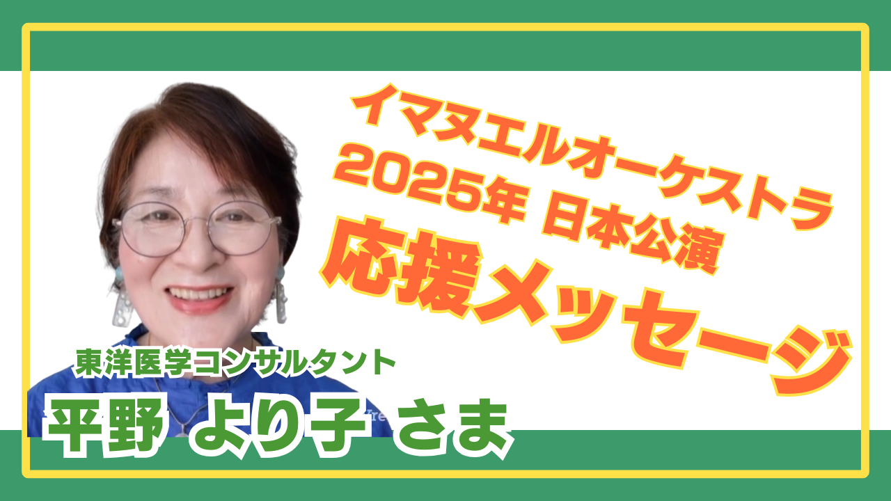東洋医学コンサルタントの平野より子様より、イマヌエルオーケストラ日本公演への応援動画を頂きました。この秋に予定される第2回公演の渡航・滞在費400万円のクラウドファンディングを呼びかけ、「スラム街を音楽の街へ」という壮大な夢を共に叶えたいと熱く語っています。チケット購入やご寄付での温かいご支援をお願いいたします。