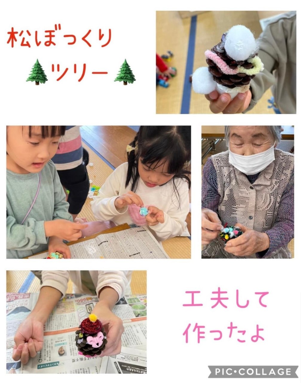松ぼっくりツリーの材料を準備していたのですが、とっても楽しい時間になりました!